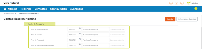 del Salario - Área de Ventas podrás configurar la contabilización para esta otra área.
