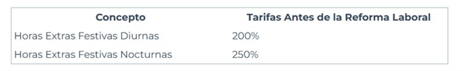 Cambio tarifas horas extras diurnas y nocturnas de los dominicales y festivos
