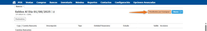 La opción de Pendientes por Consignar la encuentras en la parte superior del módulo de Bancos.