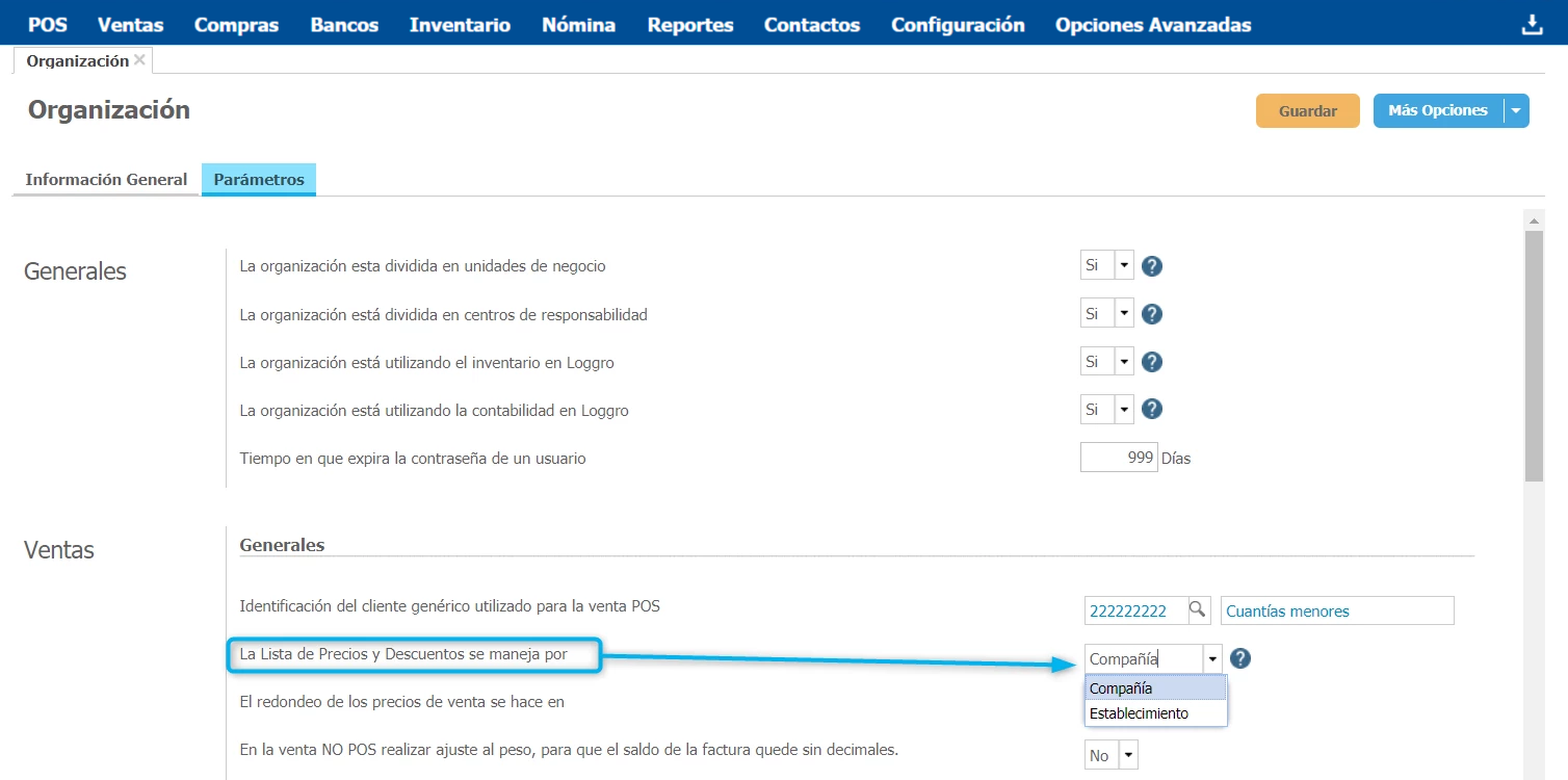 Esta configuración debes realizarla directamente desde los parámetros de venta que encuentras en la Organización.