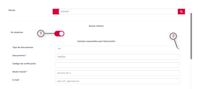 Cuando consultas un cliente en la DIAN, por defecto el sistema lo muestra como persona natural. Si el cliente es una empresa, debes activar la opción de Es empresa y posteriormente seleccionar el tipo de identificación correcta.