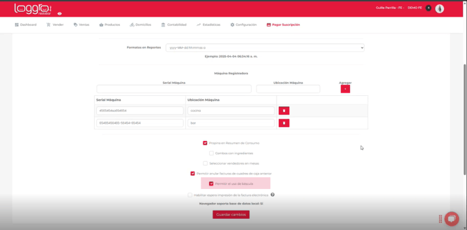 En la parte inferior de la ventana debes seleccionar la casilla de verificación en la opción Permitir el uso de báscula y da clic en Guardar cambios.