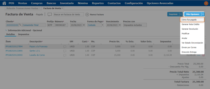 La integración entre Restobar y Pymes permite que adicional a las facturas POS se sincronicen también aquellas facturas electrónicas generadas desde Restobar.