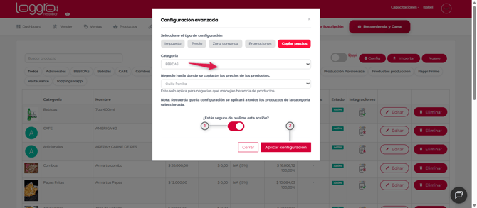 En Loggro Restobar cuentas con la posibilidad de realizar configuraciones avanzadas en tus productos.